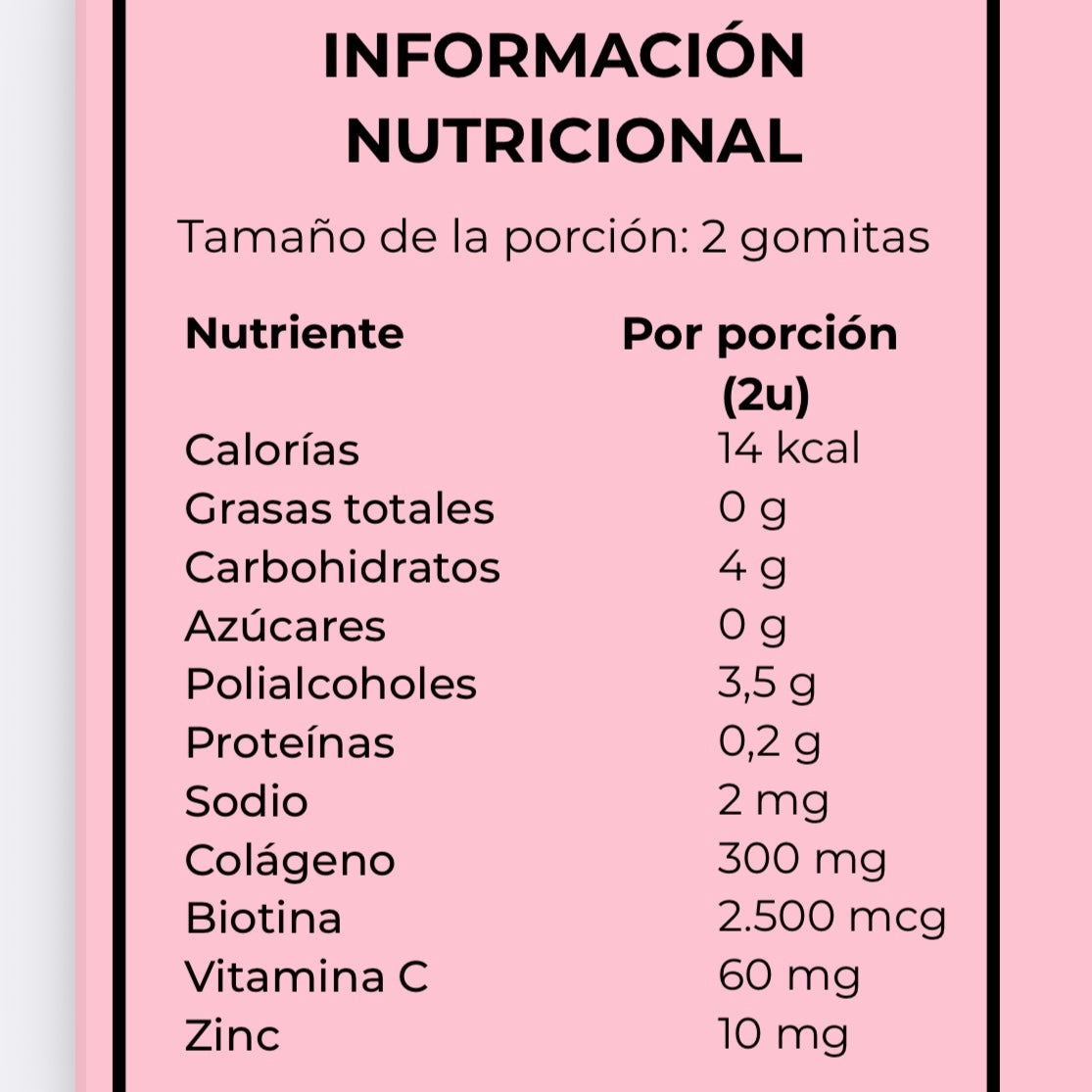 Su fórmula combina colágeno hidrolizado, biotina, vitamina C y zinc, en una presentación deliciosa, práctica y fácil de consumir todos los días.